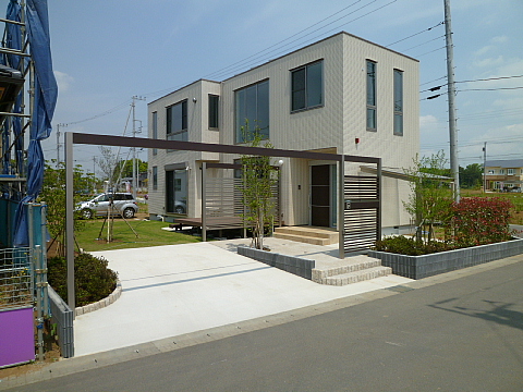 お子様の迎え、買い物と忙しい奥さまの車は玄関脇に屋根を付けて移動。